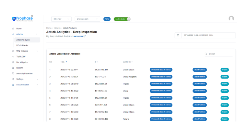 Additionally, users can blacklist or whitelist IPs, block countries, or whitelist requested URLs, providing versatile control over access management.