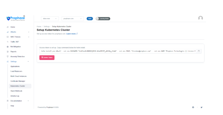 *Note: Kube-native WAF is available only for enterprise customers. Please contact Prophaze customer support to upgrade the plan.*